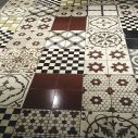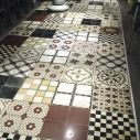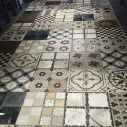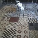 Estos días atrás estuvimos aportando nuestro granito de arena para poner a punto este “muestrario de suelos hidráulicos” que, recuperados de otros lugares, decoran ahora originalmente el piso de este multibar ubicado en el casco histórico de Cádiz.